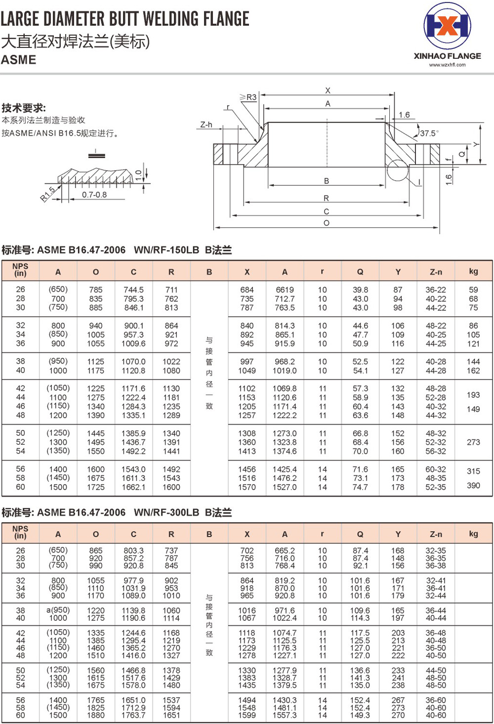 大直徑對(duì)焊法蘭(美標(biāo)) ASME