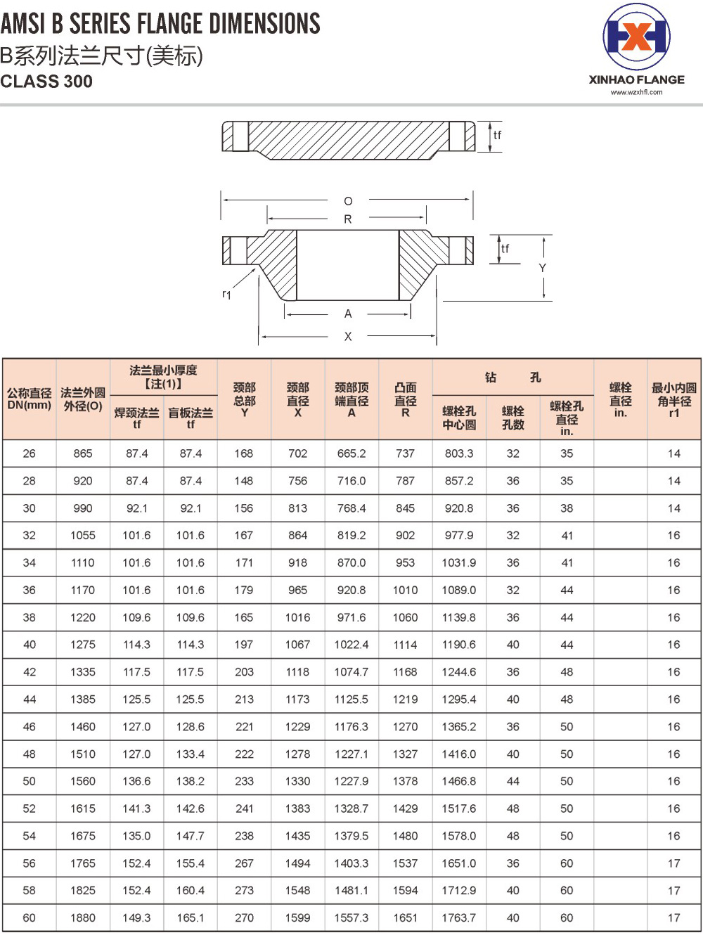 B系列法蘭尺寸(美標(biāo)) Class 300