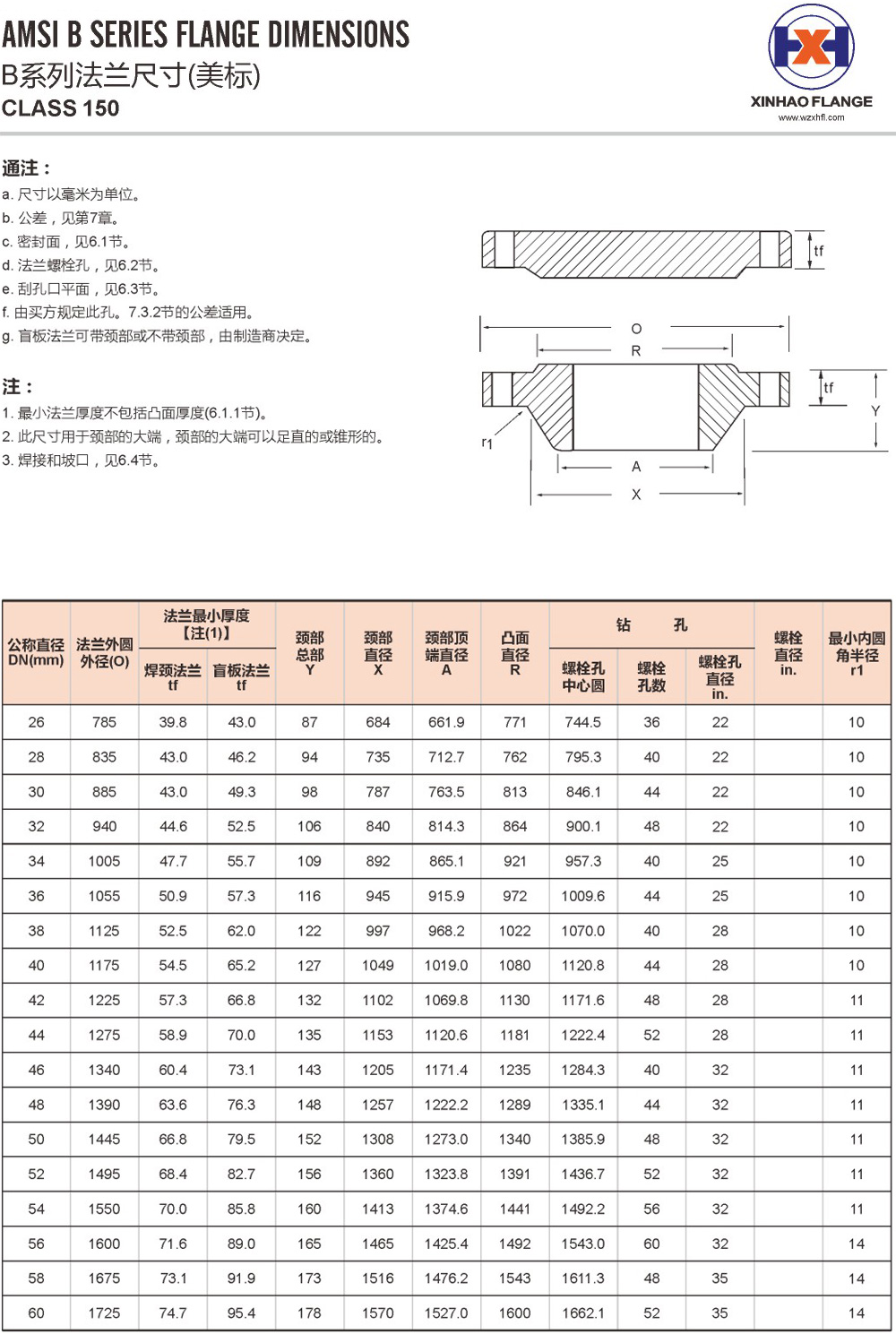 B系列法蘭尺寸(美標(biāo)) CLass 150